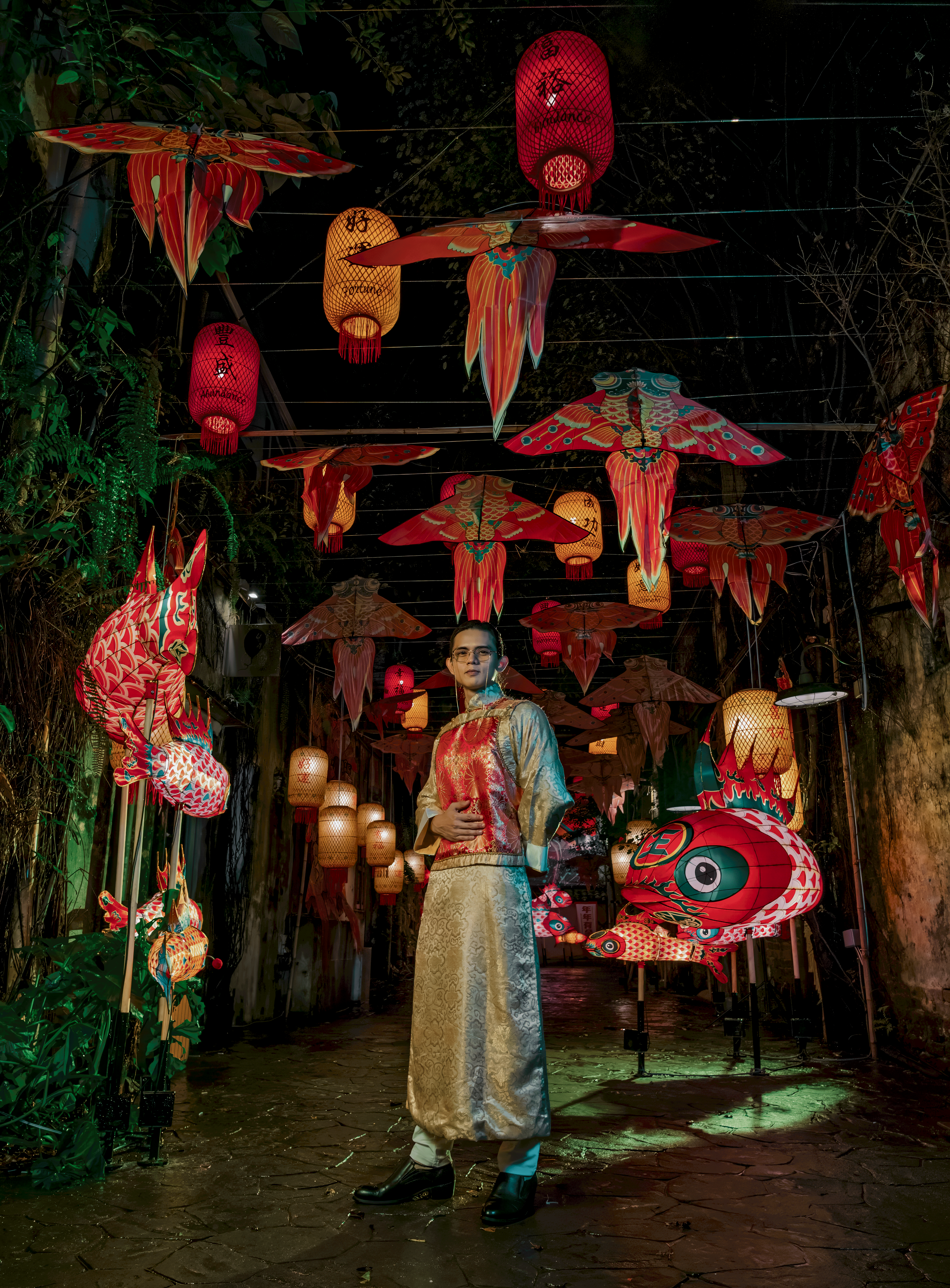 A breathtaking display of glowing fish lanterns is at the heart of the installation. Handcrafted using traditional techniques and modern LED lights, these stunning creations blend heritage and innovation. Fish lanterns have long symbolized abundance, resilience, and hope, and this reimagining keeps the tradition alive for future generations.