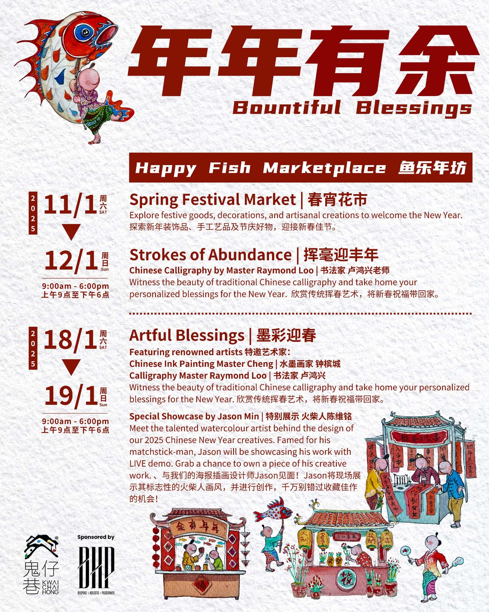 Visitors can also explore the Happy Fish Weekend Marketplace (鱼乐年坊) on January 11–12 and 18–19, featuring local vendors and delightful treats to complete your cultural experience.